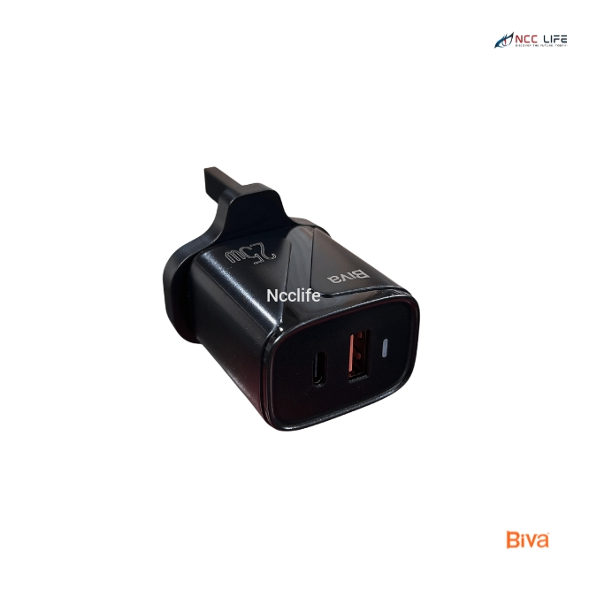 The BIVA PD+QC3.0 Fast Charger 25W (Model HC-38) is designed for fast, efficient charging for Type-C to Lightning devices. Built from durable ABS material, this charger supports both Power Delivery (PD) and Quick Charge (QC 3.0) with a combined power output of up to 25W, ensuring high-speed and reliable charging for a range of compatible devices, including iPhones and iPads. The HC-38 features a high-purity copper conductor, minimizing heat buildup and enhancing performance. With an anti-interference design and universal A+C interface compatibility, it’s an excellent choice for safe and efficient charging.