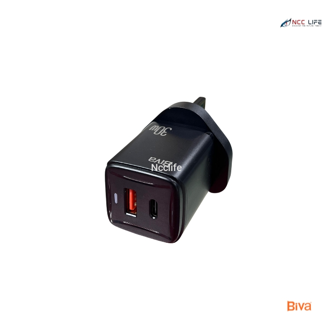 The BIVA PD+QC3.0 Fast Charger (Model HC-34) is a high-performance dual-port charger designed for fast, safe, and efficient charging. With 30W max output, it supports both Power Delivery (PD) and Quick Charge 3.0 (QC 3.0) technology, making it ideal for charging a wide range of devices including smartphones, tablets, and more. The durable ABS material ensures long-lasting use, while the A+C dual output allows for simultaneous charging through USB-A and USB-C ports. Featuring advanced safety protections such as over-voltage, over-current, and heat resistance, this charger is perfect for users who prioritize both speed and safety.