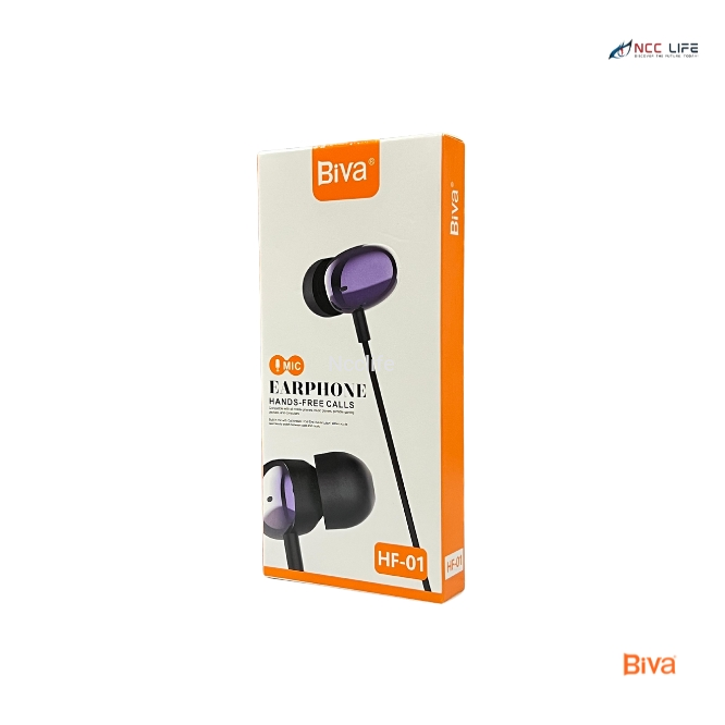 The Biva HF-01 is a dynamic in-ear stereo earphone with a 3.5mm jack, providing high-quality sound and user-friendly controls. Designed for comfort and durability, these earphones feature a 1.2m TPE and ABS cable, a sensitive 9mm driver unit, and a microphone for hands-free calling. The inline control allows easy Play/Pause, Call Answer/End, and track selection for a seamless music experience.
