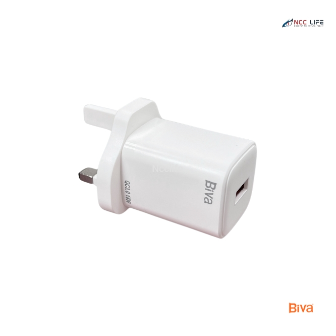 The BIVA USB Charger 18W Quick Charge 3.0 for Type-C (Model HC-019) is an efficient and durable charger optimized for high-speed charging of Type-C devices. Constructed with ABS material for durability, this charger is compatible with Quick Charge 3.0 technology, supporting multiple voltage outputs to adapt to different charging needs, including 5V/3A, 9V/2A, and 12V/1.5A. Ideal for a range of Type-C compatible devices, it offers stable and quick power delivery while safeguarding devices against overheating and overcharging.