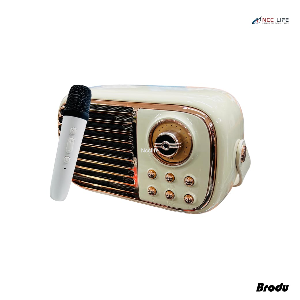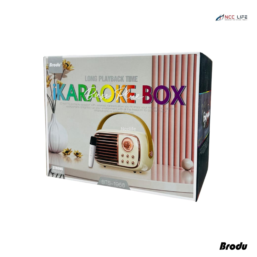 The BTS-1956 Karaoke Bluetooth Speaker is a stylish and powerful portable speaker designed for music, parties, and karaoke fun. With a 10W output power, it delivers loud and clear sound with deep bass. The 3.7V/1800mAh rechargeable battery ensures hours of continuous playtime, while the DC 5V input makes recharging simple and convenient. Featuring Bluetooth connectivity, USB, TF card, and AUX support, this versatile speaker lets you enjoy music from multiple sources. Its compact yet durable design makes it a perfect choice for indoor use and outdoor gatherings.