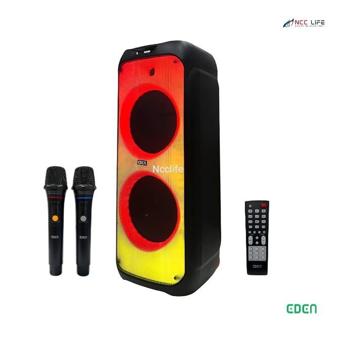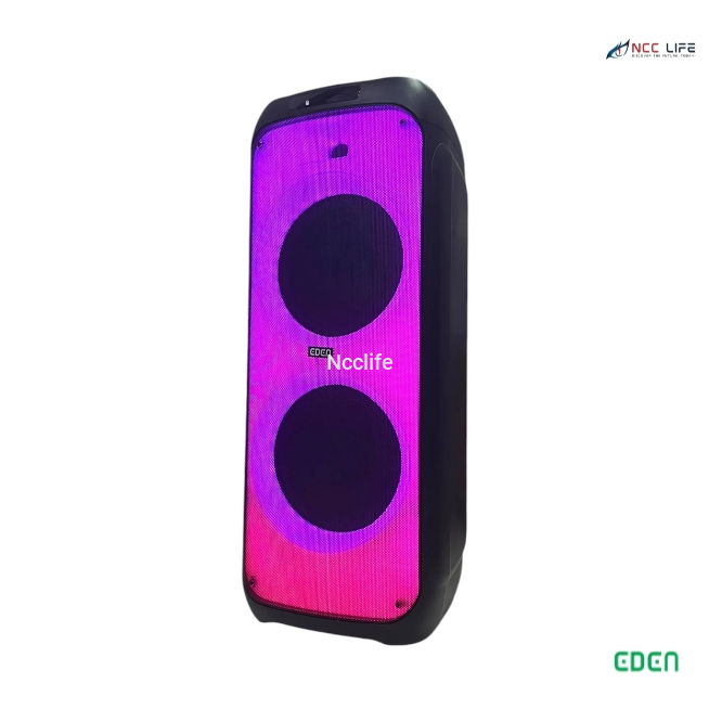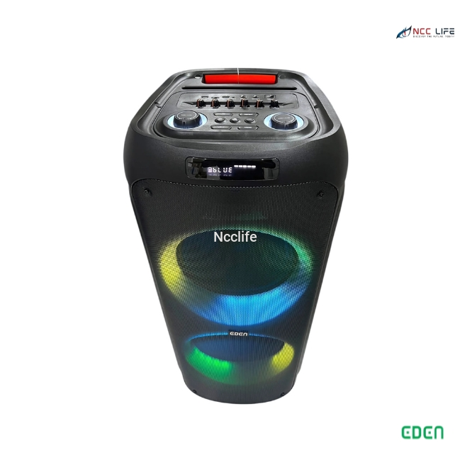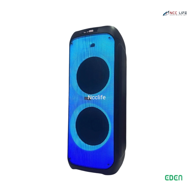 The EDEN ED-1251 Partybox Speaker is a robust, high-powered 120W RMS outdoor speaker ideal for events and gatherings. With dual 12" woofers and a 2" tweeter, it delivers strong bass and clear sound. The speaker features a lead-acid 12V/9000mAh battery for 3-8 hours of playtime, Bluetooth 5.0, AUX input, dual USB slots, TF card slot, FM radio, and dedicated inputs for microphone and guitar, making it perfect for karaoke. Customizable bass, treble, and mic settings ensure versatile audio control. The TWS function allows wireless pairing of two speakers for an immersive stereo experience.