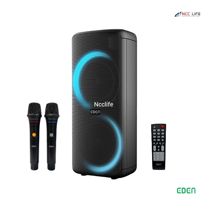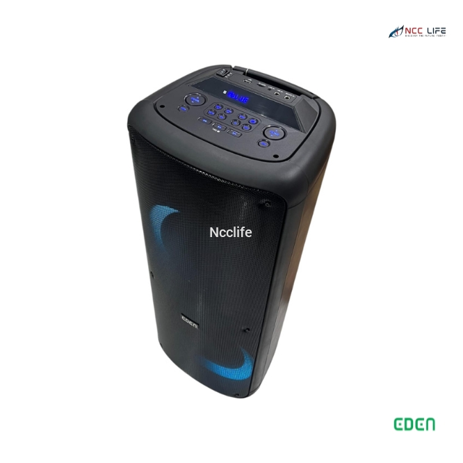 The EDEN ED-1006 Partybox Speaker is designed for dynamic, high-powered audio experiences, featuring 100W RMS output with dual 10" woofers and a 1.5" tweeter for clear, impactful sound. With a 12V/4500mAh lead acid battery, this speaker offers long-lasting playtime between 4-9 hours and recharges in 2-4 hours. Bluetooth 5.3 compatibility enables seamless wireless streaming, while multiple inputs, including AUX, USB, TF Card, MIC, and Guitar inputs, expand connectivity options. Enhanced with Disco lighting and MEGA BASS functionality, this speaker is perfect for lively gatherings and live performances.