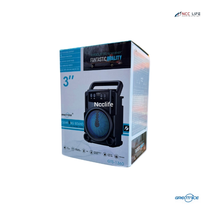 The Great Nice Bluetooth Speaker GTS-1360 delivers powerful sound in a compact size, making it ideal for home, outdoor use, and small gatherings. This 3-inch speaker offers deep bass and crystal-clear audio, with Bluetooth connectivity for seamless wireless streaming. Its built-in rechargeable battery provides long hours of playtime, and multiple input options make it a versatile choice for music lovers. The lightweight and portable design ensures easy carrying for music on the go.