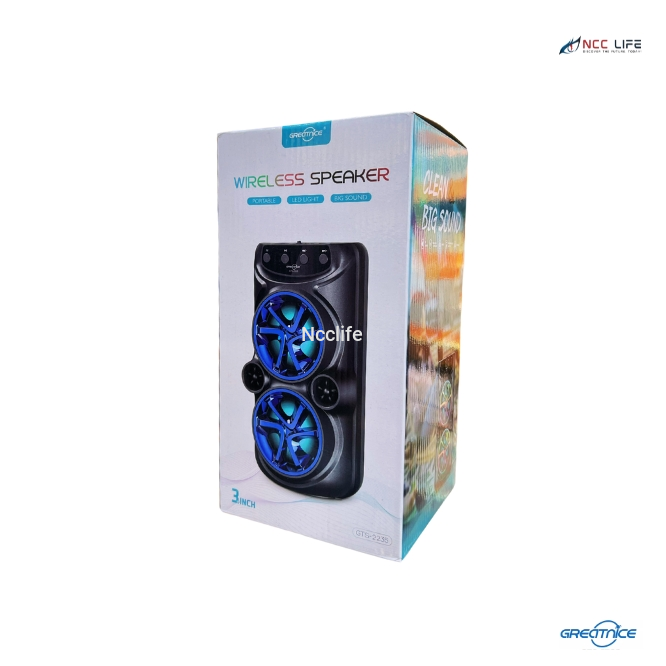 The Great Nice GTS-2235 Bluetooth Speaker is a compact yet powerful speaker designed for music lovers on the go. With its 3"x2" design, this speaker delivers crisp audio and deep bass, making it ideal for home, outdoor activities, and small gatherings. The Bluetooth connectivity ensures seamless wireless music streaming from smartphones, tablets, and laptops. A rechargeable battery provides long hours of playtime, and multiple input options allow for flexible music playback.