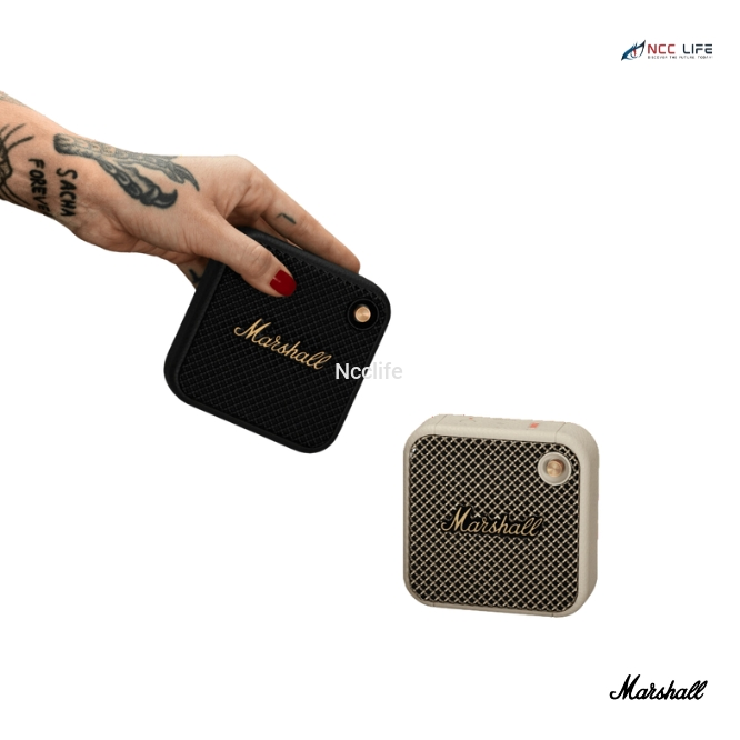 The Marshall Willen is a compact yet powerful portable speaker designed to deliver iconic Marshall sound wherever you go. Its rugged build and IP67 dust- and water-resistant design make it ideal for outdoor adventures. With over 15 hours of playtime and a built-in microphone, this speaker is versatile and convenient, ensuring uninterrupted listening experiences. Made with 60% recycled plastic, the Willen is eco-friendly without compromising on performance or style.