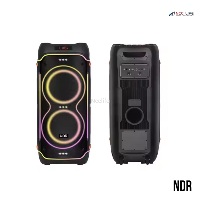 Turn up the volume with the NDR 1808 Wireless Karaoke Bluetooth Speaker, equipped with dual 8" inch woofers that deliver deep bass and powerful sound output. This versatile party speaker is perfect for karaoke nights, outdoor gatherings, or indoor entertainment. With a wireless microphone, vibrant LED lighting, and multiple playback modes, it's a complete audio system in a portable design.
