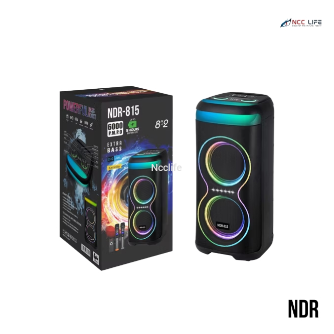 Pump up your parties with the NDR 815 Wireless Karaoke Bluetooth Speaker, built with dual 8" inch woofers to deliver booming bass and crisp audio clarity. Whether you're hosting a karaoke session, a celebration, or just enjoying music with friends, this portable speaker comes packed with features like Bluetooth connectivity, a wireless mic, and LED light effects to set the perfect vibe.