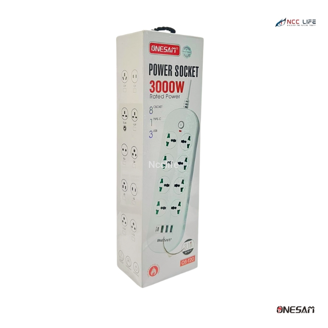 The Onesam OS-T20 Power Socket is a high-power multi-plug extension designed for safe and efficient power distribution. With a 3000W capacity, it can handle multiple devices simultaneously. The 2-meter cable provides flexibility, while the 3.1A USB output allows for fast charging of mobile devices without needing an extra adapter.