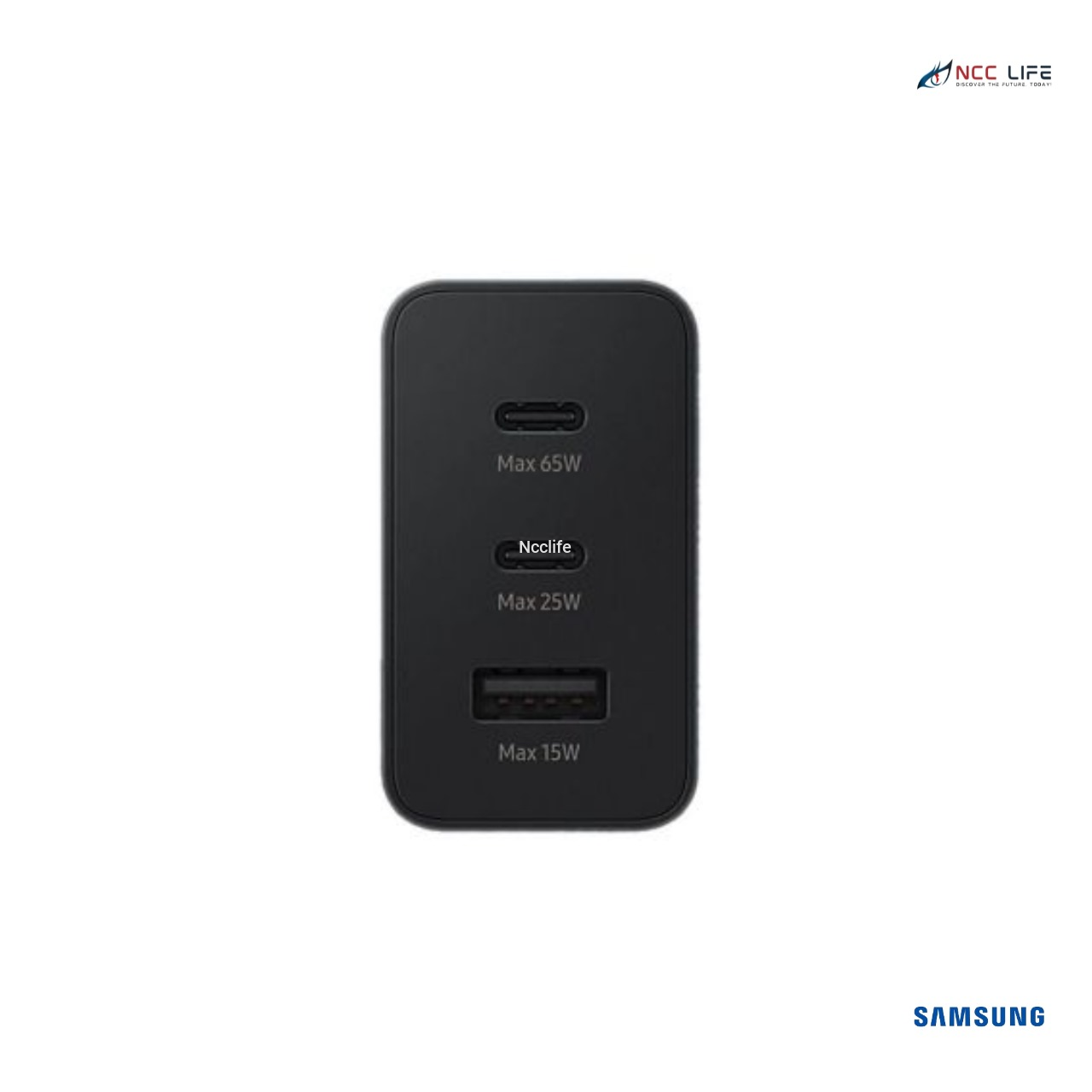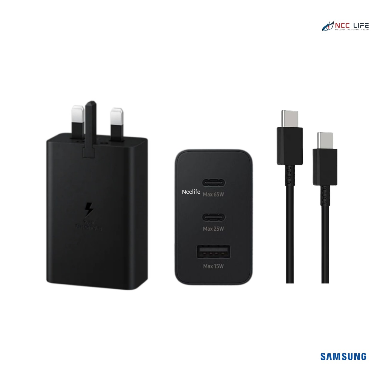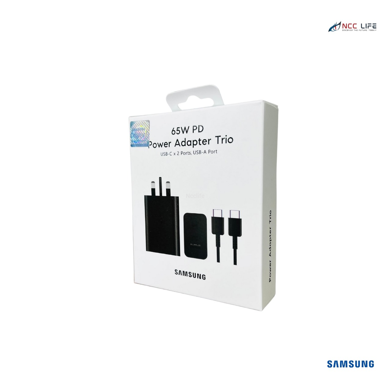 Charge multiple devices at once with the Samsung 65W Trio Charger, designed for speed, safety, and convenience. With three ports and intelligent power distribution, this compact adapter can fast-charge smartphones, tablets, and even laptops. Includes a durable Type-C to Type-C cable for reliable high-speed charging.