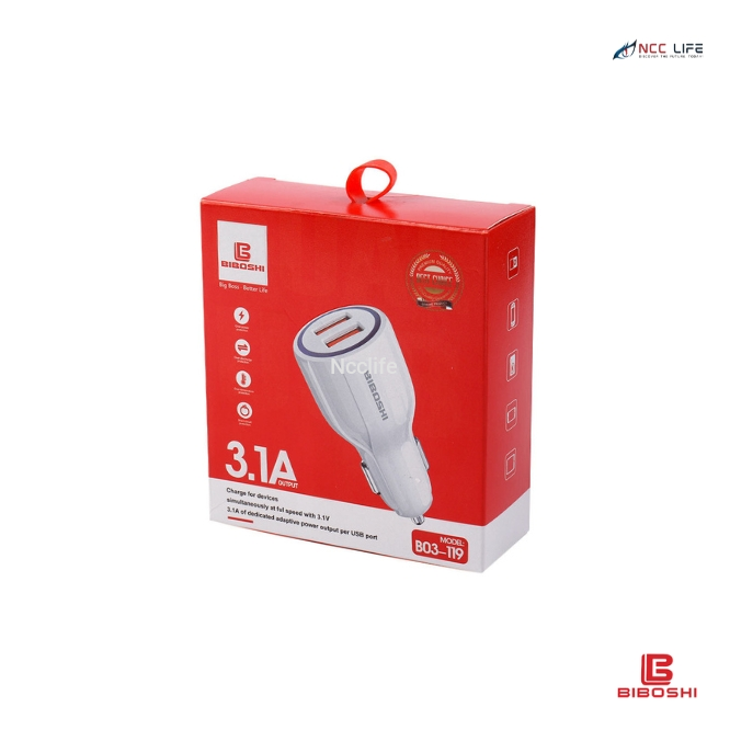 Power up your devices efficiently while on the go with the Biboshi 2 USB Vehicle Adapter (Model B06-119). Designed for convenience and safety, this adapter features dual USB ports and a robust 3.1A output, ensuring fast charging for your devices. Crafted from fire-retardant materials and equipped with built-in smart recognition technology, it offers reliable performance and multi-layered protection.