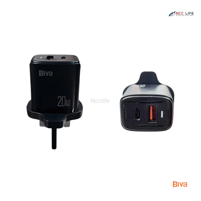 The BIVA PD+QC3.0 Fast Charger (Model HC-33) is a high-efficiency charger designed for Lightning-compatible devices. Offering a total power output of 20W, it ensures rapid charging using Power Delivery (PD) and Quick Charge 3.0 (QC 3.0) technologies. Equipped with dual output ports (A+C), it supports simultaneous charging of two devices, making it perfect for busy users who need fast, reliable charging for their smartphones, tablets, and other devices. Constructed from durable ABS material, this charger also incorporates built-in protections against over-voltage, over-current, and overheating, ensuring your device's safety.