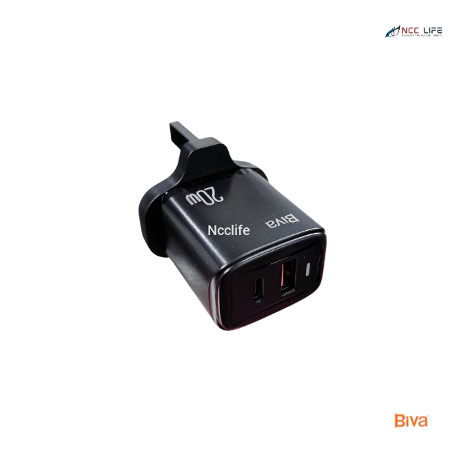 The BIVA PD+QC3.0 Fast Charger (Model HC-33) offers a compact and efficient solution for fast charging and data transfer. This 20W charger supports both PD (Power Delivery) and QC 3.0 (Quick Charge) technologies, providing quick and safe charging for mobile devices, tablets, and more. The dual-output ports (A+C) allow simultaneous charging through USB-A and USB-C interfaces. Constructed with durable ABS material, it ensures long-lasting performance, while integrated safety features offer protection against over-current, over-voltage, and overheating.