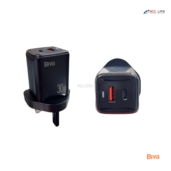 The BIVA PD+QC3.0 Fast Charger (Model HC-34) is a high-performance dual-port charger designed for fast, safe, and efficient charging. With 30W max output, it supports both Power Delivery (PD) and Quick Charge 3.0 (QC 3.0) technology, making it ideal for charging a wide range of devices including smartphones, tablets, and more. The durable ABS material ensures long-lasting use, while the A+C dual output allows for simultaneous charging through USB-A and USB-C ports. Featuring advanced safety protections such as over-voltage, over-current, and heat resistance, this charger is perfect for users who prioritize both speed and safety.