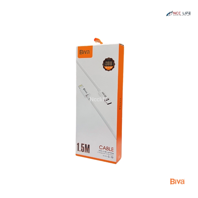 The BIVA Type-C to Lightning Charging & Transmission Cable (Model C-13) delivers high-speed charging and data transmission with a sleek and durable design. Supporting up to 20W fast charging (9V/2.4A), this 1.5-meter cable is compatible with Apple devices featuring Lightning ports, offering seamless charging for iPhones, iPads, and more. With a transmission rate of 480Mbps, it ensures efficient data transfer between devices. Its intelligent current regulation ensures safe and stable charging, protecting devices from over-voltage or over-current damage. The PC+TPE construction adds durability, making it perfect for everyday use.