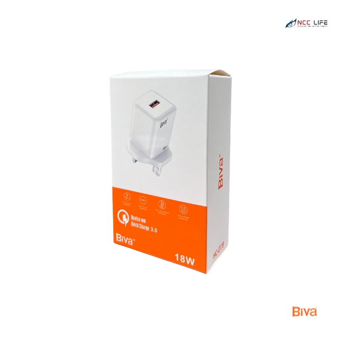 The BIVA USB Charger 18W Quick Charge 3.0 for Micro (Model HC-019) offers fast and reliable charging for Micro-USB devices. This charger is built with ABS material for durability and includes Quick Charge 3.0 technology, providing multiple output voltages of 5V/3A, 9V/2A, and 12V/1.5A. Designed to deliver efficient power, it adapts to the connected device’s charging requirements, ensuring safety and speed while charging.