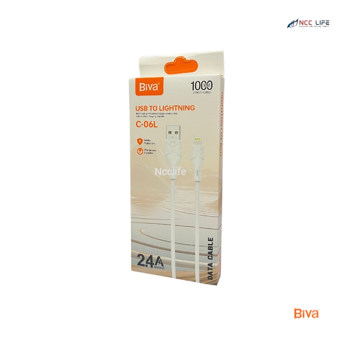 The BIVA USB to Lightning Data Cable (Model C-06L) is designed to deliver fast, safe, and reliable charging for your Apple devices. Featuring a thickened copper core, this cable ensures low energy loss and quick data transfers. Built with safety protection in mind, it is durable and ideal for everyday use. Charge and sync your iPhones, iPads, and other Lightning-compatible devices seamlessly with this high-quality cable.