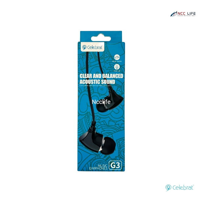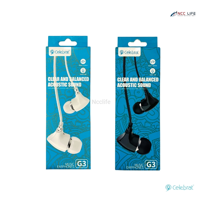 The Celebrat G3 Music Earphones deliver clear and balanced acoustic sound, offering an immersive audio experience. With a 10mm dynamic speaker and a wide frequency range of 20Hz-20KHz, these earphones are ideal for music enthusiasts. The multifunction button allows you to control music playback, answer calls, and activate Siri with a long press, making it perfect for hands-free convenience. Compatible with any device featuring a 3.5mm jack, the G3 ensures a snug, comfortable fit with its ergonomic design and durable 1.2m TPE cable, allowing for long hours of use without discomfort.