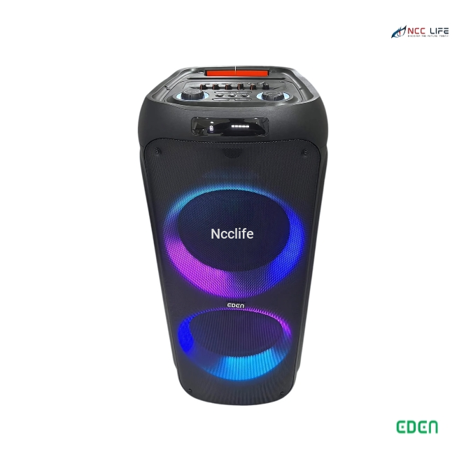 The EDEN ED-1251 Partybox Speaker is a robust, high-powered 120W RMS outdoor speaker ideal for events and gatherings. With dual 12" woofers and a 2" tweeter, it delivers strong bass and clear sound. The speaker features a lead-acid 12V/9000mAh battery for 3-8 hours of playtime, Bluetooth 5.0, AUX input, dual USB slots, TF card slot, FM radio, and dedicated inputs for microphone and guitar, making it perfect for karaoke. Customizable bass, treble, and mic settings ensure versatile audio control. The TWS function allows wireless pairing of two speakers for an immersive stereo experience.