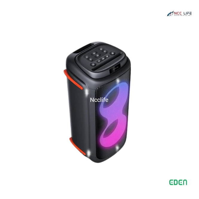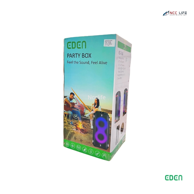 The EDEN ED-650 Partybox Speaker brings immersive, high-power sound with its 120W RMS output, featuring dual 6.5" woofers and dual 2.5" tweeters for rich, stereo audio. Ideal for outdoor and indoor gatherings, this speaker is IPX4 waterproof and includes a range of connectivity options like AUX, Bluetooth 5.3, USB/TF card input, and FM radio. With a robust 18.5V/4000mAh battery, it offers 3-8 hours of playtime. This versatile party speaker also includes microphone and guitar inputs, TWS pairing, and sound controls for bass, treble, and echo.