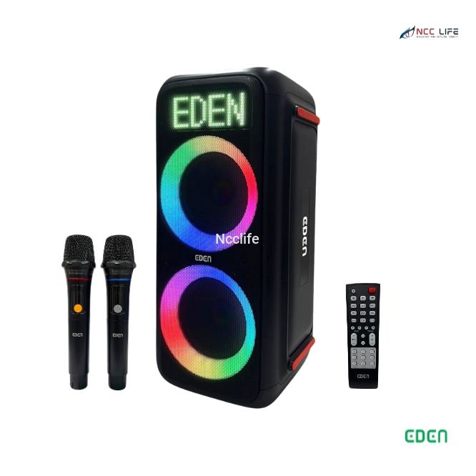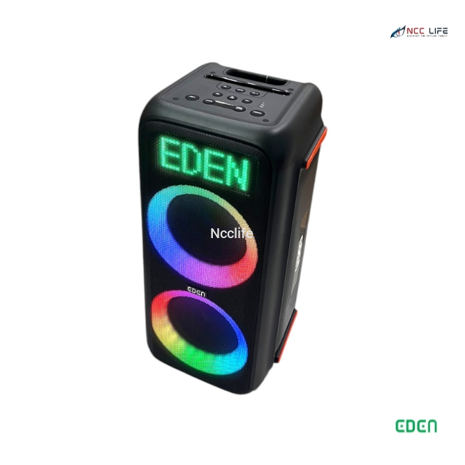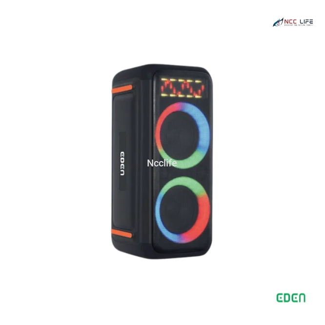 Bring power to your party with the EDEN ED-850 Partybox Speaker, boasting a strong 150W RMS output and dual 8" woofers paired with 2.5" tweeters for full-range sound. Equipped with Bluetooth 5.0 and TWS (True Wireless Stereo) capabilities, this speaker also includes inputs for AUX, USB, TF Card, and even a guitar for live performances. With an IPX4 waterproof and dustproof design, it’s perfect for both indoor and outdoor settings. The long-lasting 18.5V/4000mAh battery supports up to 8 hours of playtime, and the Type-C USB charging port ensures fast recharging. Customize your sound with bass, treble, mic volume, and echo controls, and enjoy LED lights to set the mood.
