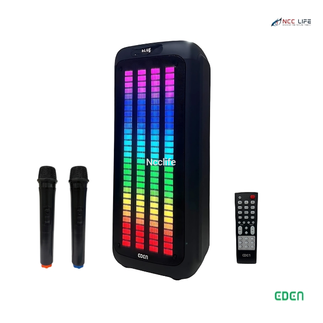 The EDEN ED-1019 Partybox Speaker is designed for dynamic outdoor sound, with 80W RMS power, dual 10" woofers, and a 2" tweeter for immersive audio. It features a 12V/7500mAh battery, providing between 3-8 hours of playtime, and includes Bluetooth 5.0, AUX, USB, TF card input, and microphone input options. With customizable bass, treble, mic volume, and echo controls, this speaker is perfect for karaoke, outdoor gatherings, and parties. The ED-1019 also has AC/DC operation, remote control functionality, and microphone priority to ensure a versatile and powerful sound experience.