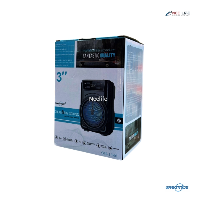 The Great Nice Bluetooth Speaker GTS-1346 is a compact and stylish speaker that delivers clear sound with deep bass, making it ideal for home, outdoor use, and small gatherings. With Bluetooth connectivity, you can wirelessly stream music from your smartphone, tablet, or laptop. The built-in rechargeable battery provides long hours of playtime, while multiple playback options ensure versatile audio enjoyment. Its lightweight and portable design makes it easy to carry anywhere.