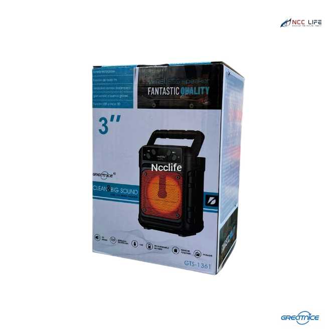 The Great Nice Bluetooth Speaker GTS-1361 offers clear and dynamic sound in a compact 3-inch design. Whether you're hosting a small party, enjoying music at home, or on-the-go, this speaker delivers deep bass and crisp audio. Bluetooth connectivity allows easy wireless streaming from your smartphone, tablet, or laptop. With its built-in rechargeable battery, you can enjoy hours of uninterrupted music. Its lightweight and portable design makes it the perfect choice for those who need music on the move.