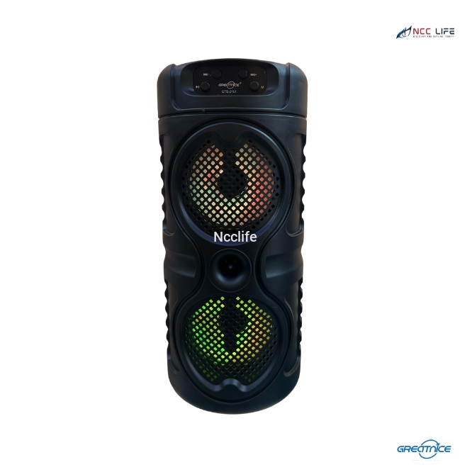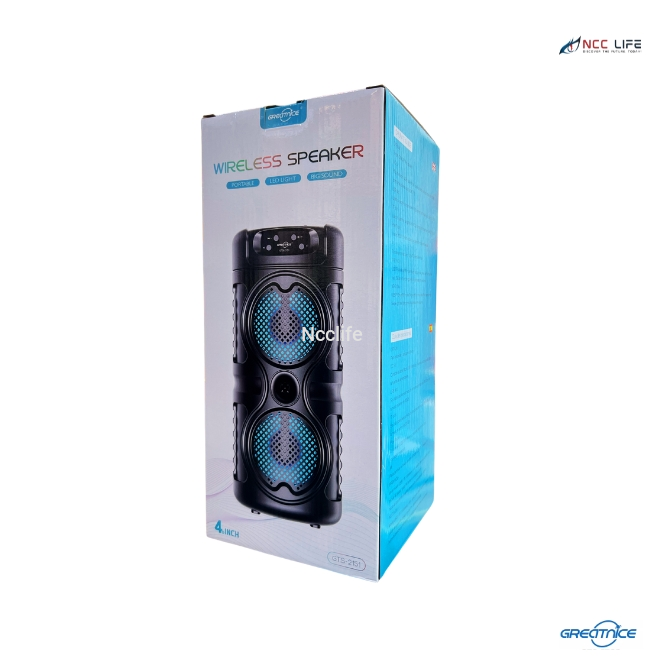 Enjoy powerful stereo sound with the Great Nice Portable Bluetooth Speaker GTS-2151, featuring dual 4-inch speakers for deep bass and crystal-clear audio. Whether you're at home, outdoors, or hosting a party, this compact yet high-performance speaker delivers immersive sound. With Bluetooth connectivity, multiple input options, and a built-in rechargeable battery, you can enjoy wireless music streaming anytime, anywhere. The LED lights add a fun touch, making it perfect for entertainment and casual use.
