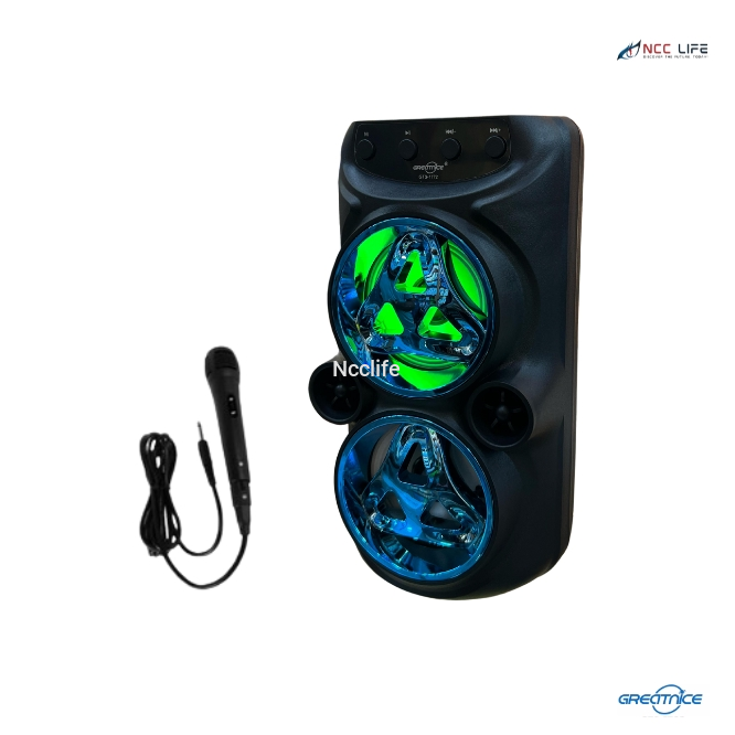 The Great Nice GTS-1772 Bluetooth Speaker is a compact yet powerful speaker, perfect for karaoke, parties, and home entertainment. Featuring a wired microphone, this 3"x2" speaker allows for singing, voice amplification, and music playback with ease. With Bluetooth connectivity, you can wirelessly stream your favorite tunes from smartphones, tablets, or laptops. The rechargeable battery provides hours of entertainment, and multiple input options give you flexibility in playing music from various sources.