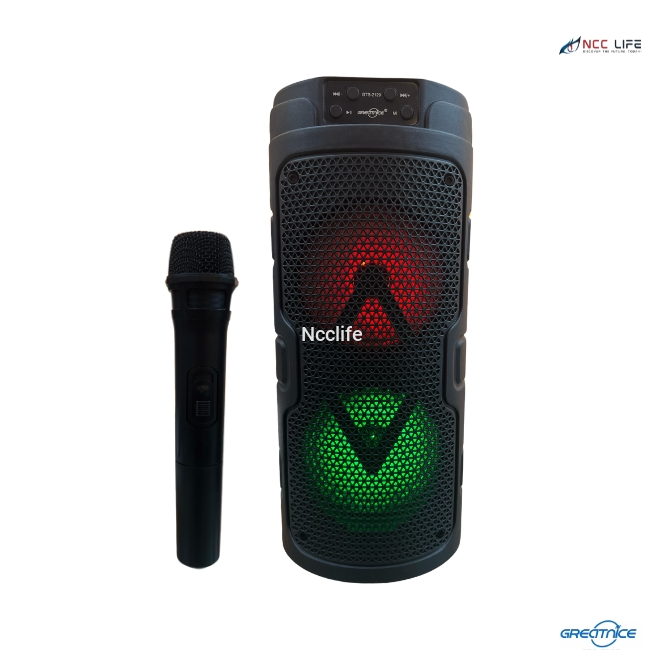 The Great Nice Portable Karaoke Bluetooth Speaker GTS-2129 is designed for powerful stereo sound with dual 4-inch speakers, delivering deep bass and crystal-clear audio. Perfect for parties, karaoke, outdoor events, and home entertainment, this speaker features Bluetooth connectivity, multiple input options, and a built-in rechargeable battery for uninterrupted music playback. The wired microphone support makes it ideal for karaoke sessions, while the colorful LED lights enhance the party atmosphere.