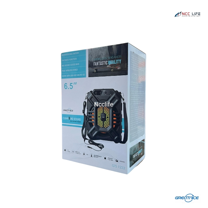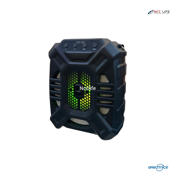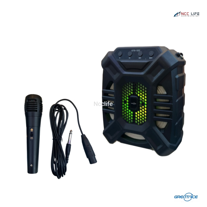 Bring the party anywhere with the GTS-1222 Bluetooth Speaker, featuring dual 6.5" woofers that deliver dynamic sound and strong bass. This portable karaoke speaker comes with a wired microphone, perfect for singing sessions, announcements, or casual entertainment. With its sleek design, LED lighting, and versatile connectivity, the GTS-1222 is an ideal choice for home, outdoor, or event use.