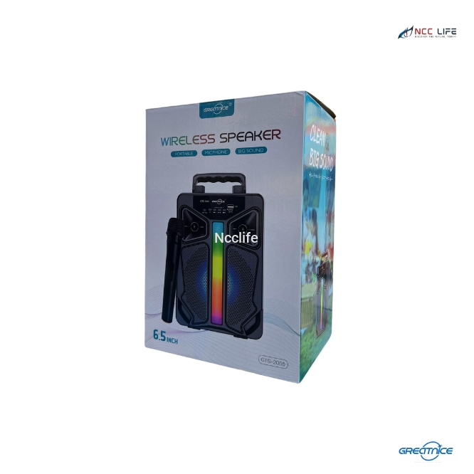 Crank up the fun with the GTS-2066 Bluetooth Speaker, equipped with a 6.5" woofer to deliver rich bass and crisp sound. Perfect for karaoke, parties, and casual gatherings, this speaker includes a wireless microphone, colorful LED lighting, and multi-functional playback options. Its portable design makes it easy to take the music wherever you go—indoors or outdoors.