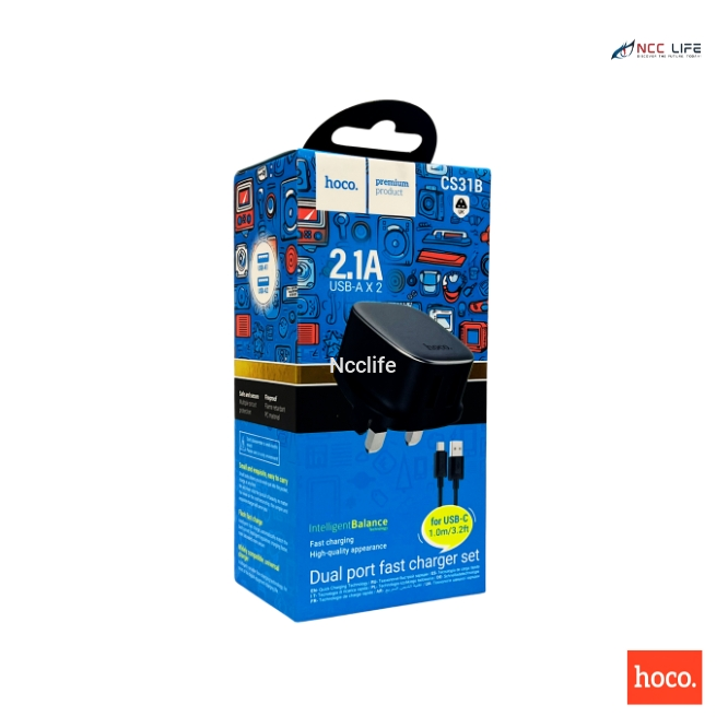 The Hoco CS31B Dual Port Fast Charger is designed to keep your devices charged efficiently. This compact and reliable charger features dual USB-A ports for simultaneous charging of multiple devices. With universal compatibility, it supports tablets, wireless headphones, smartphones, and other 5V-charged devices, making it a versatile addition to your charging accessories.