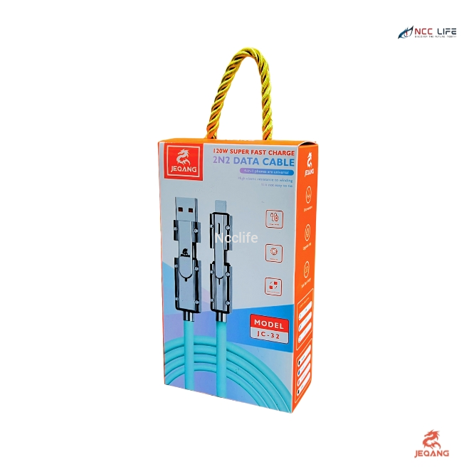The JEQANG JC-32 120W 2-in-2 Data Cable is engineered for super-fast charging and high-speed data transfer. Designed for multi-device compatibility, this cable features dual Type-C and USB-A interfaces, allowing users to charge two devices simultaneously with maximum efficiency. The 120W power output ensures quick charging for laptops, smartphones, and tablets, while the durable braided design enhances longevity.
