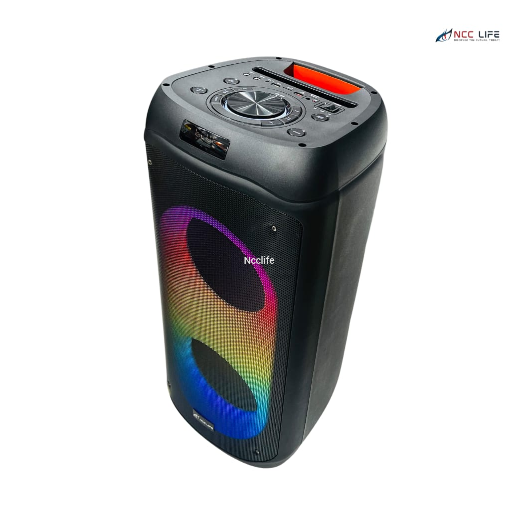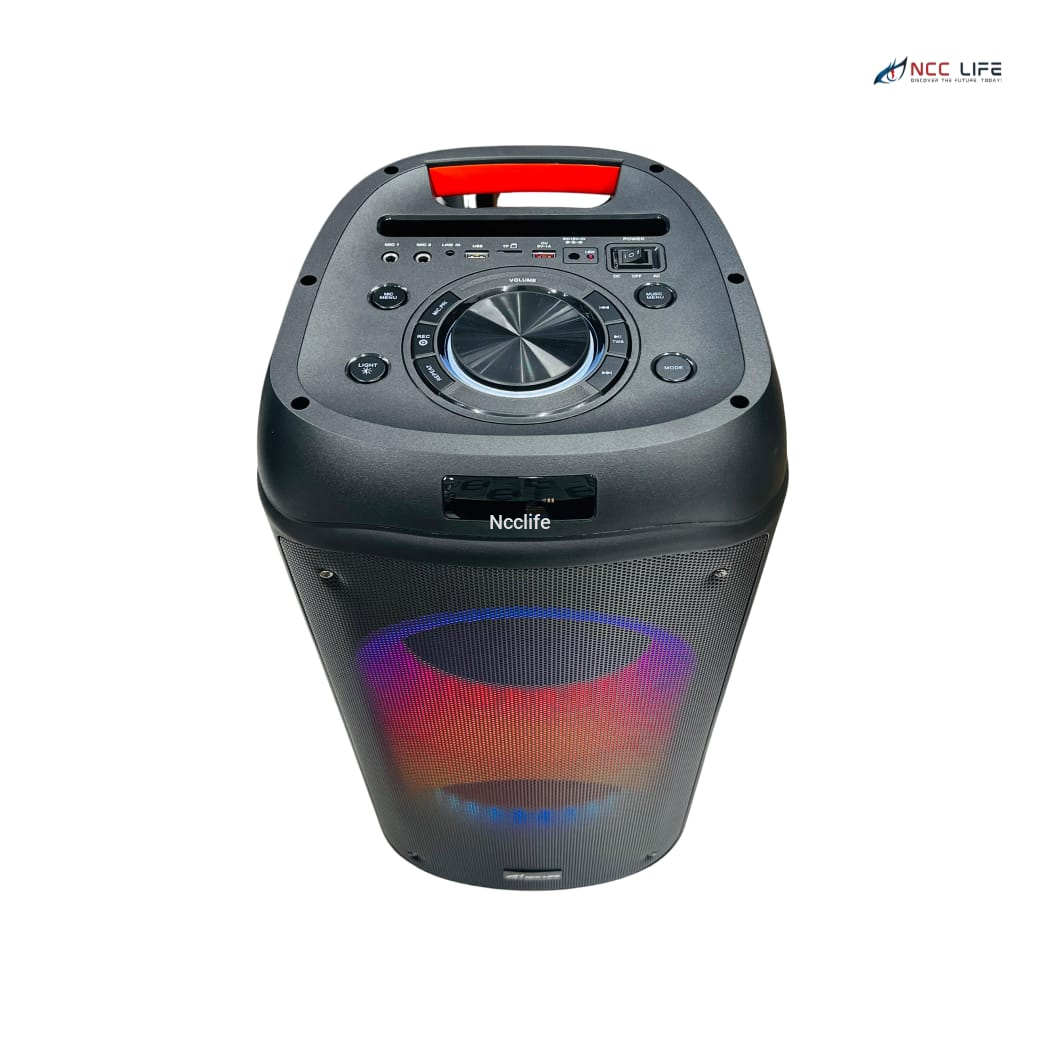 Take your music anywhere with the NCClife NCC-810 Karaoke Bluetooth Speaker—designed to deliver powerful sound, blazing bass, and flexible power options. Whether you're indoors or outdoors, this party box has you covered with dual 8″ woofers and a robust 60 W RMS output. It supports both direct current (DC 5V) and battery-powered use with a 12V/4.5A (4500 mAh) rechargeable lithium battery for uninterrupted playback.