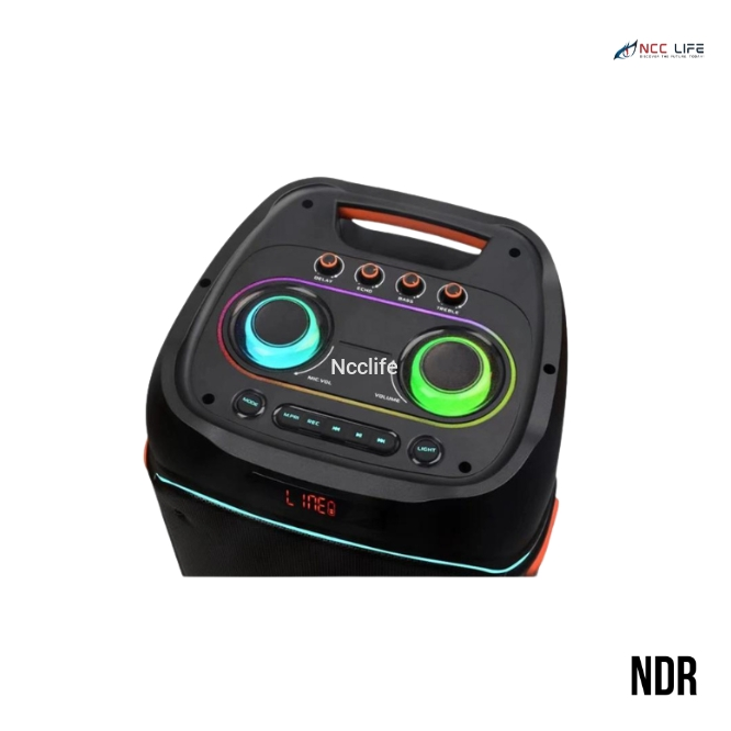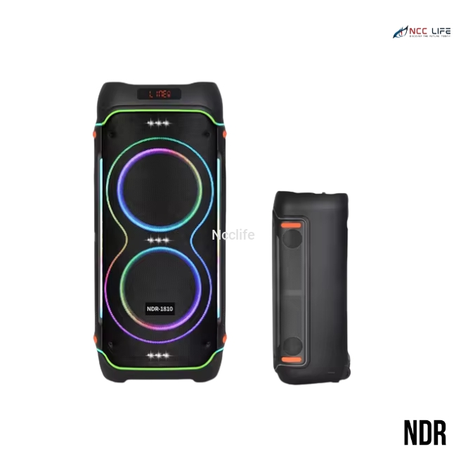 Elevate your party experience with the NDR 1810 Wireless Karaoke Bluetooth Speaker, now with dual 10" inch powerful woofers that deliver booming bass and immersive sound. Ideal for indoor and outdoor use, this speaker includes wireless microphone support, RGB lighting effects, and multiple playback options including Bluetooth, USB, and FM radio. With a sleek design and vibrant lights, it's perfect for karaoke, events, or just enjoying music in high quality.