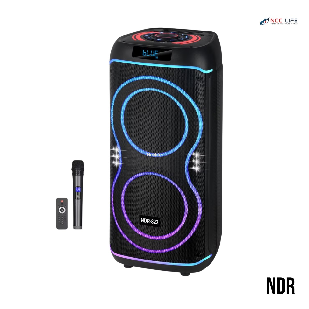 Turn up the party with the NDR-822 Dual 8-Inch Bluetooth Party Speaker, built for powerful bass and vibrant sound. With dual 8-inch woofers, wireless connectivity, and colorful LED lighting, it’s the perfect speaker for indoor events, outdoor gatherings, or karaoke nights. Designed to deliver rich audio and energetic vibes wherever you go.