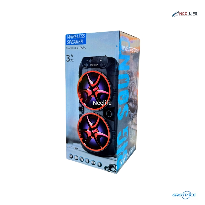 The KTX-1588A Wireless Speaker is a compact 3"x2" speaker designed for superior sound quality and easy portability. With Bluetooth connectivity, this speaker allows you to wirelessly stream your favorite music from smartphones, tablets, or laptops. Its rechargeable battery offers hours of uninterrupted listening, while its lightweight design makes it easy to take anywhere. The speaker is perfect for home use, outdoor activities, and parties, delivering clear audio with a touch of convenience.